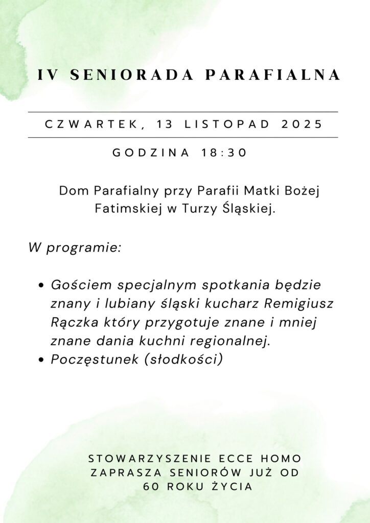 W dniu 13.11.2025 r. odbyła się w Turzy Śląskiej IV Seniorada Parafialna zorganizowana przez Stowarzyszenie Ecce Homo. Gościem specjalnym był